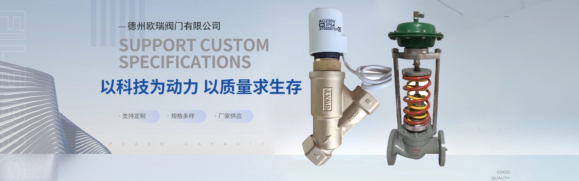 公司以科技為動(dòng)力,自主研發(fā)生產(chǎn)各種電動(dòng)閥系列產(chǎn)品,自力式產(chǎn)品系列,氣動(dòng)閥系列;并與西門子、丹佛斯、霍尼韋爾等一線品牌為戰(zhàn)略合作伙伴