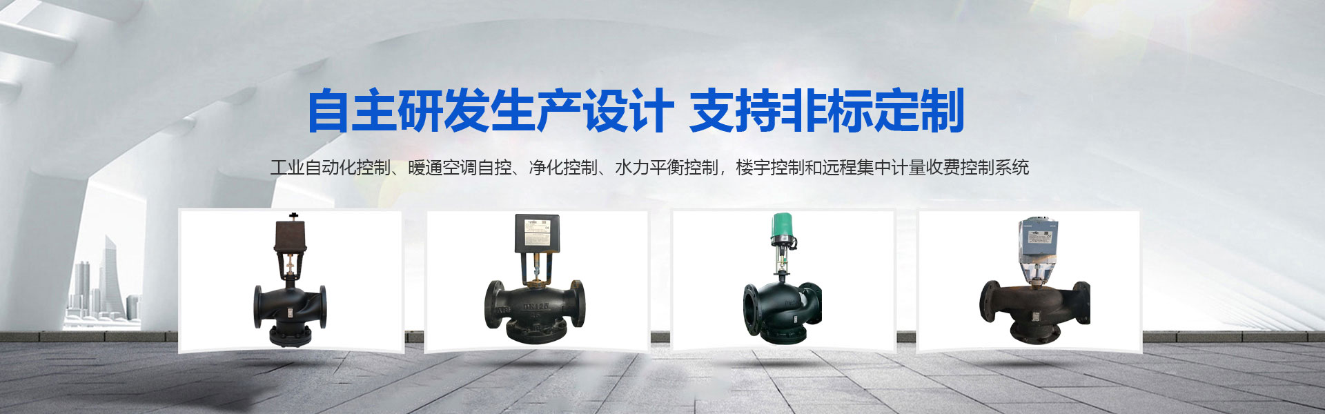 公司自主研發(fā)生產(chǎn)的各式電動(dòng)二通閥、比例積分閥、電動(dòng)調(diào)節(jié)閥、氣動(dòng)閥,氣動(dòng)調(diào)節(jié)閥,空調(diào)地暖溫控器及控制裝置等